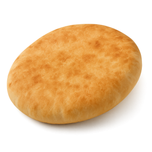 Pain pita : souple, légèrement grillé, servant d’enveloppe.