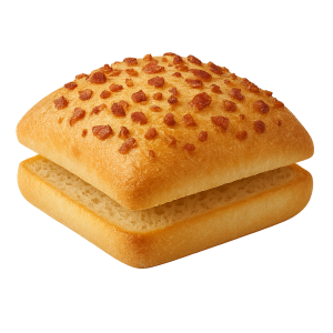 Un pain brioché, moelleux, souvent aux graines de sésame ou de pavot, toasté pour plus de tenue.
